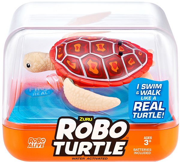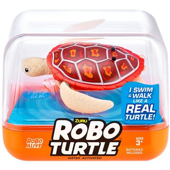 Distreaza-te pe apa si pe uscat cu broscuta testoasa Robo Turtle! Pune-o in apropierea apei si urmareste-i mersul incet si leganat catre mal. Broscuta foloseste inotatoarele mobile pentru a merge sau pentru a inota.