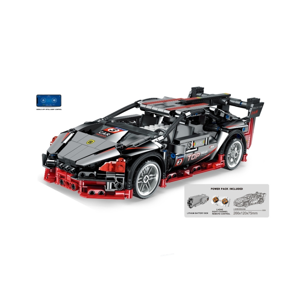 Set de constructie Masina negru-rosu cu RC si cu acumulator 585 el., ZJA351301