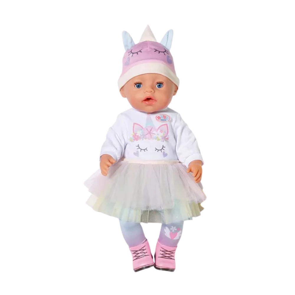 Papusa bebelus Baby Born, hainute Unicorn, 36 cm, bea din sticluta, face pipi si plange