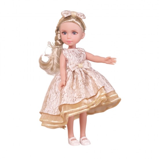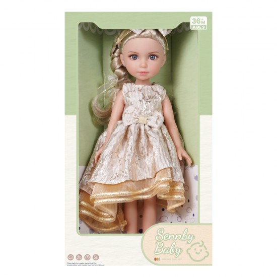 Papusa blonda 35 cm cu rochie aurie, ZJA353026