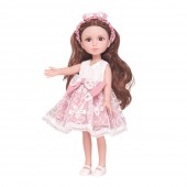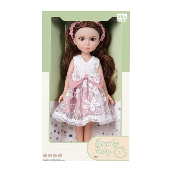 Papusa bruneta 35 cm cu bentita si rochie alb-roz, ZJA353021