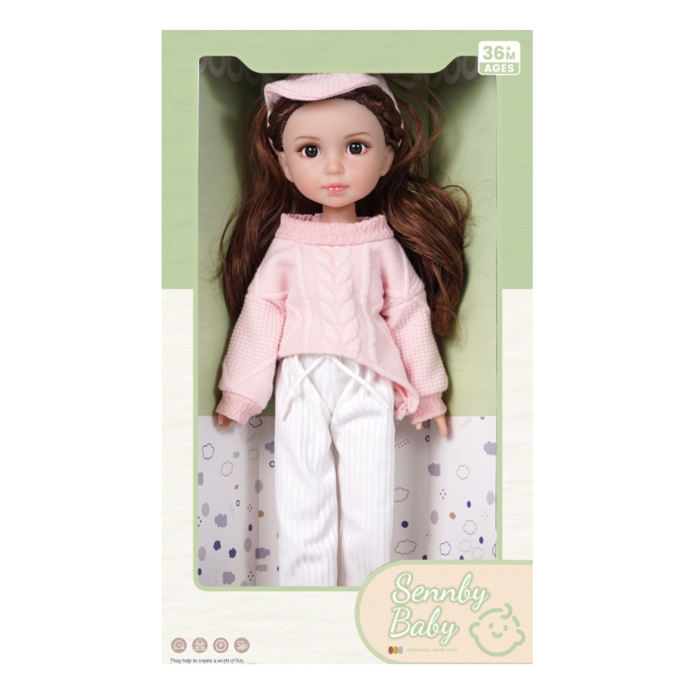 Papusa bruneta 35 cm cu pulover roz si pantaloni, ZJA353022