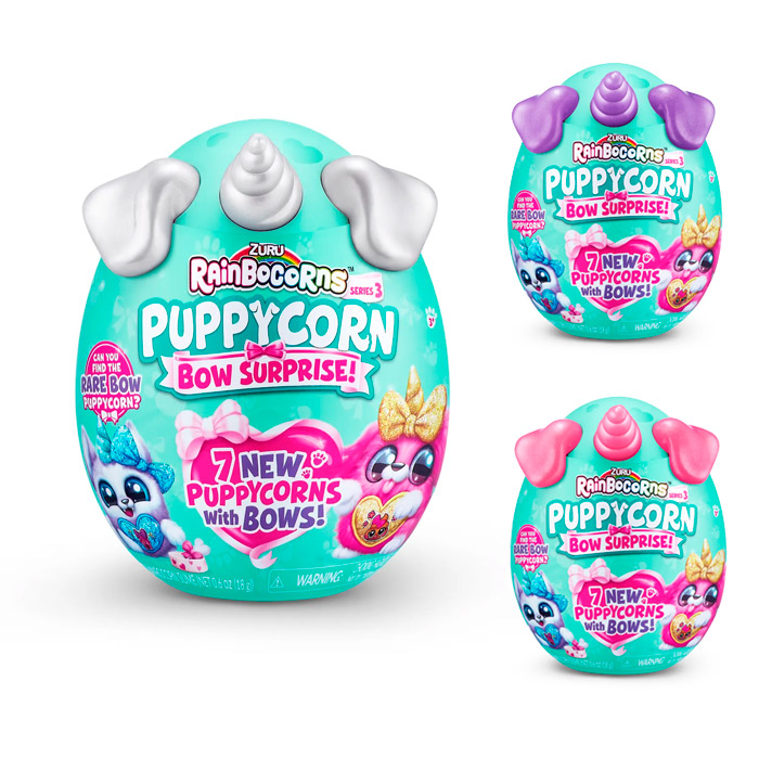 Jucarie de plus surpriza Rainbocorns Puppycorn Surprise Bow S6, Zuru