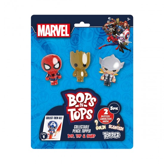 Faceti cunostinta cu eroii tai preferati din universul Marvel! Topperurile colorate "Bop n Tops" adauga creativitate si distractie scrisului sau sarcinilor de zi cu zi. Figurinele pot fi puse pe un creion sau pix. Alege ce erou iti place cel mai mult?