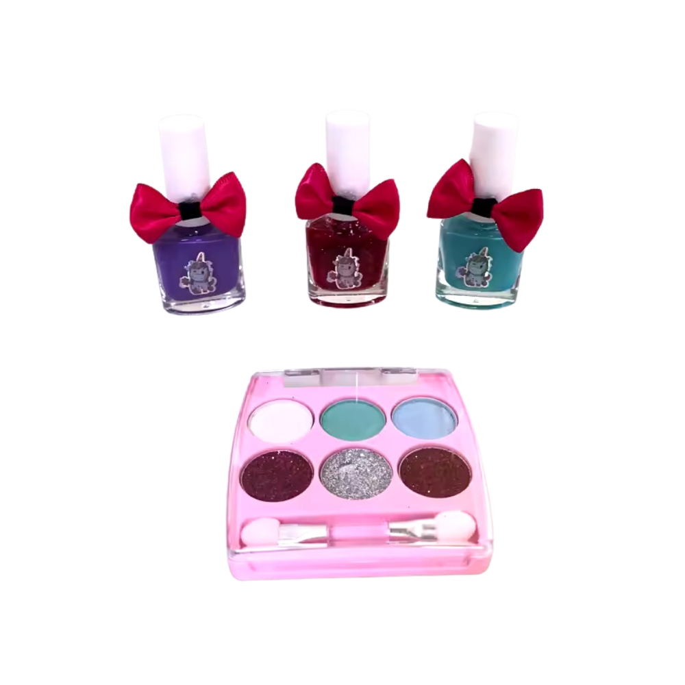 Set cu 3 lacuri de unghii, pila, paleta farduri, sclipici buze, burete unghii Magical Unicorn, ZJA293671