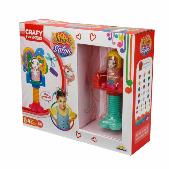 Set pasta de modelat si accesorii Salon de coafura Crafy Fun Dough 4x50 gr. 12 accesorii