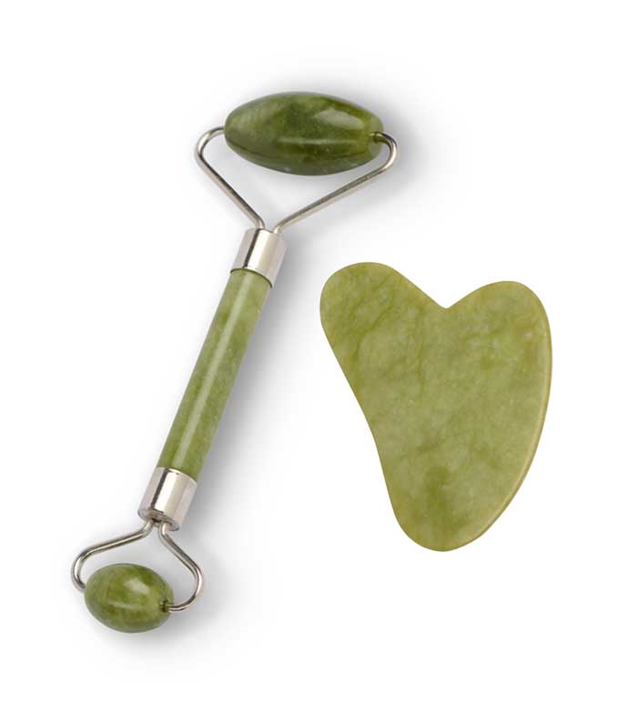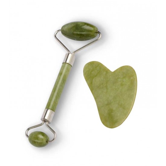 80087 Set cu Roller de jad + Piatra Gua Sha Tip Jad pentru masaj facial IDC Institute