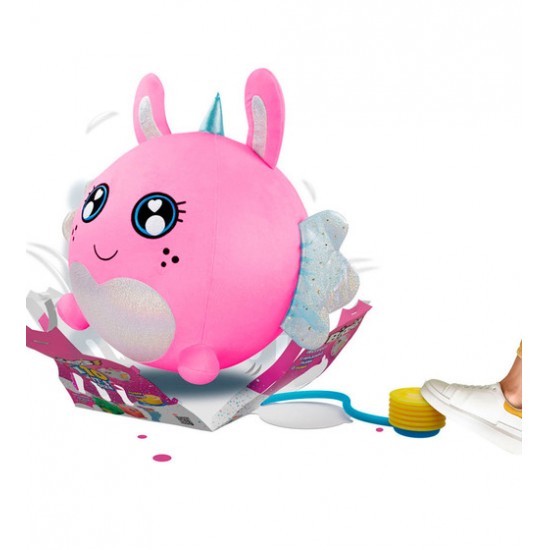 Scoate folia din cutie, deschide usa cu pompa si incepe sa pompezi aer. Jucaria se umfla, cutia se deschide, iar personajul apare cu un efect WOW! Incepe un joc distractiv si bucura-te de o dispozitie buna pentru intreaga zi!