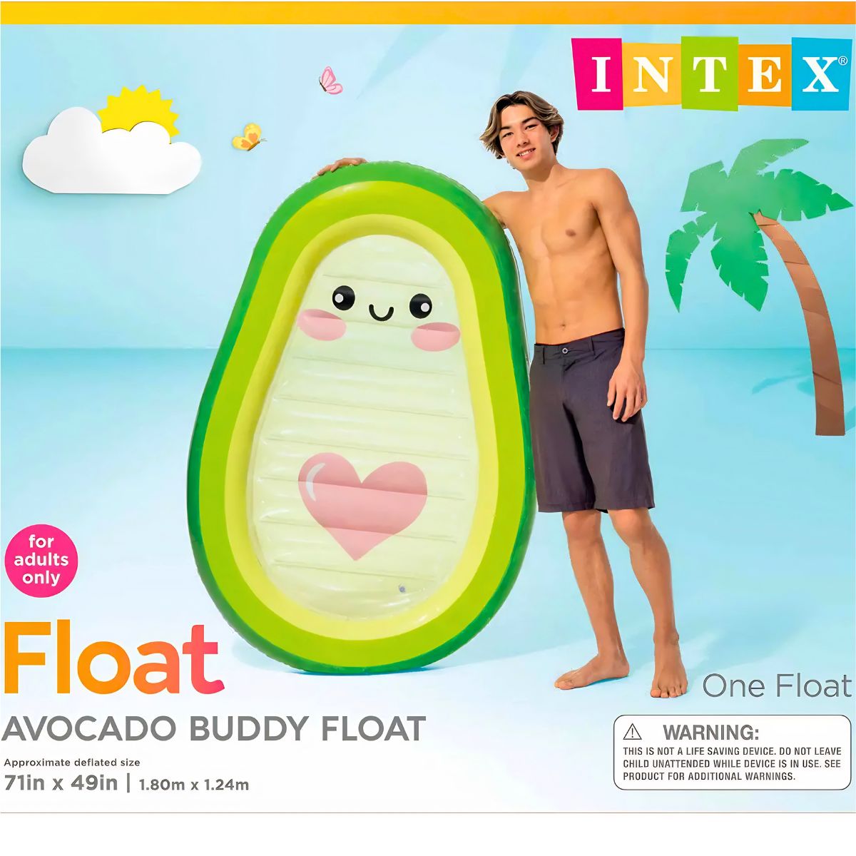 Relaxeaza-te intr-un mod inedit cu salteaua Intex Avocado Buddy! Aceasta saltea simpatica in forma de avocado nu doar ca arata grozav in poze, dar dispune si de un corp central transparent care iti permite sa privesti sub suprafata apei in timp ce plutesti. Este partenerul ideal pentru momentele de "chill" la piscina sau la mare, oferind un confort sporit si un design prietenos cu un detaliu in forma de inima. Materialul rezistent asigura o utilizare indelungata pentru tot sezonul estival.