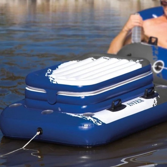 Bucura-te de bauturi reci fara a parasi apa cu Intex Mega Chill 2! Aceasta lada frigorifica gonflabila este solutia suprema pentru petrecerile la piscina sau relaxarea pe lac. Dispune de un compartiment central generos cu capac, capabil sa depoziteze pana la 72 de doze de suc si gheata. Mai mult, compartimentul central este detasabil, baza putand fi folosita ca suport plutitor pentru o lada frigorifica traditionala (pana la 45 litri). Dotata cu 6 suporturi de pahare incorporate, 4 manere rezistente si o sfoara de ancorare pentru conectarea la alte accesorii Intex, Mega Chill 2 este definitia confortului pe timp de vara.