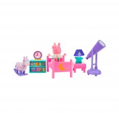 Peppa te invita in dormitorul ei confortabil. In camera puteti gasi totul pentru joc: patul Peppei, o masa cu o lampa, o biblioteca, un telescop si un cal balansoar.