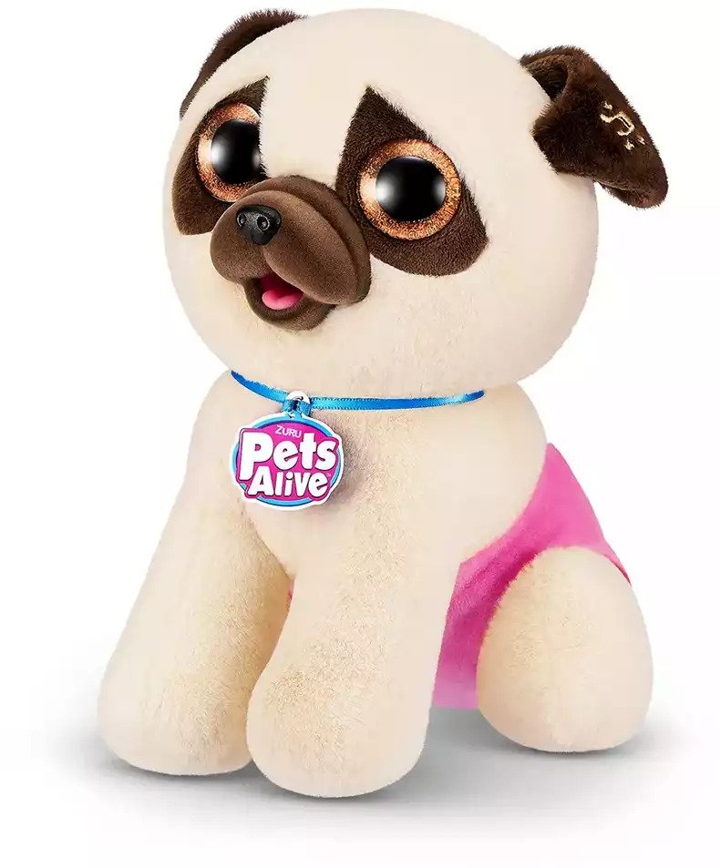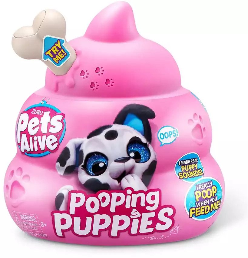 Fa cunostinta cu catelusul dragut din colectia Pets Alive! Este amuzant si invata sa mearga la toaleta. Hraneste-l cu un os pentru a vedea cum isi schimba magic culoarea. Apasa-i urechea si vei auzi zgomote dragute.