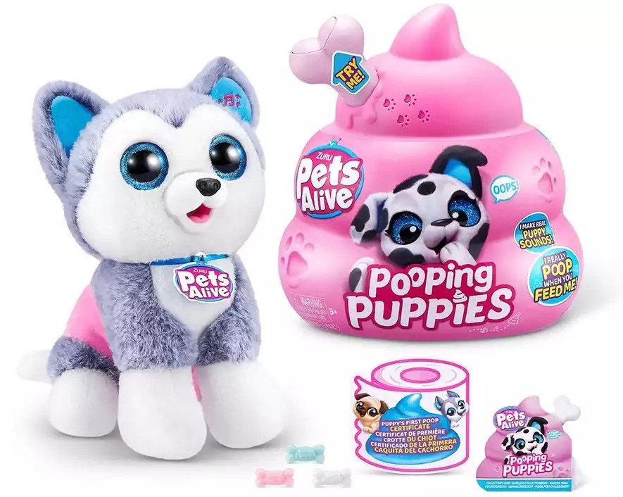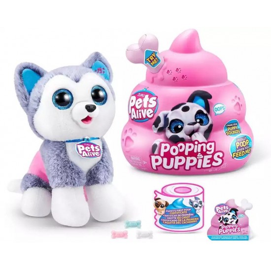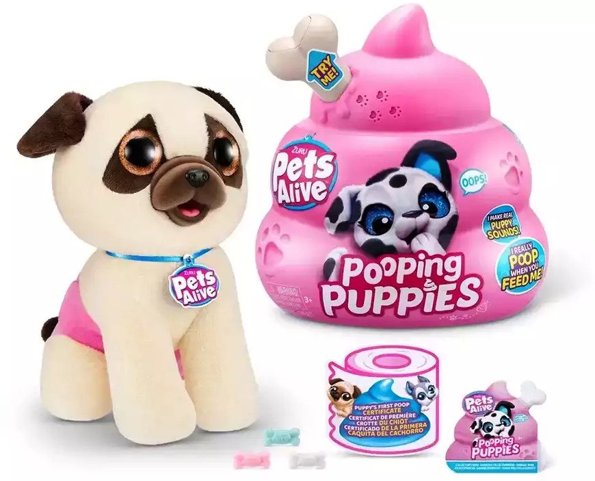 Jucarie de plus surpriza Catelus Interactiv, Pooping Puppies Pets Alive