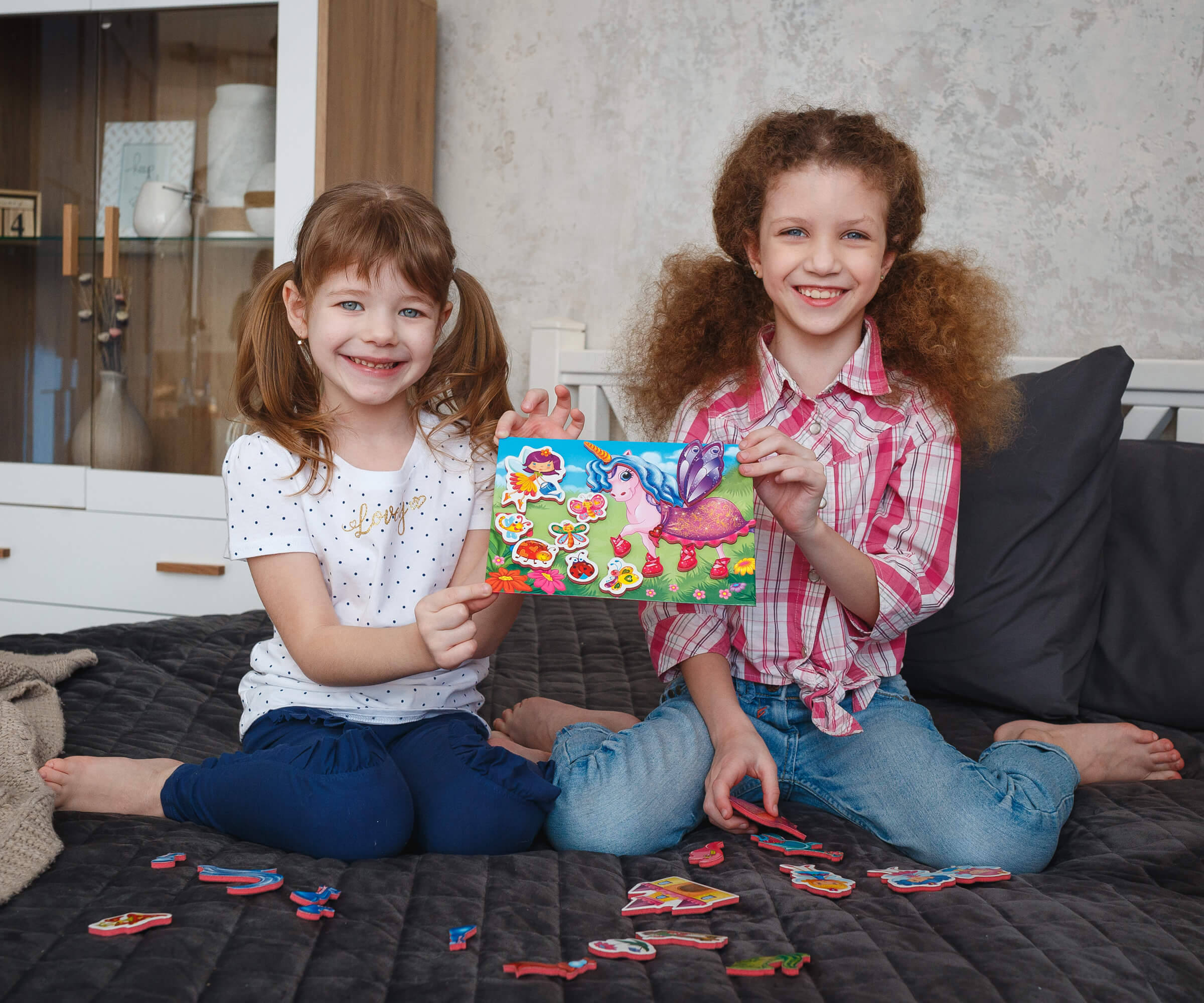 Asezati magnetii voluminosi pe o tabla speciala, creati-va propriul complot si creati imagini colorate si originale!