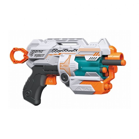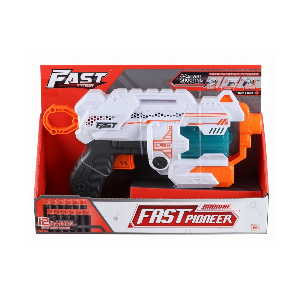 Blaster de jucarie manual cu gloante din spuma, 12 proiectile, cilindru rotativ, Fast Pioneer
