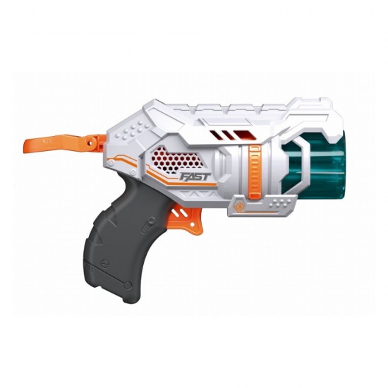 Blaster de jucarie manual cu gloante din spuma, 4 proiectile, cilindru rotativ, Fast Pioneer