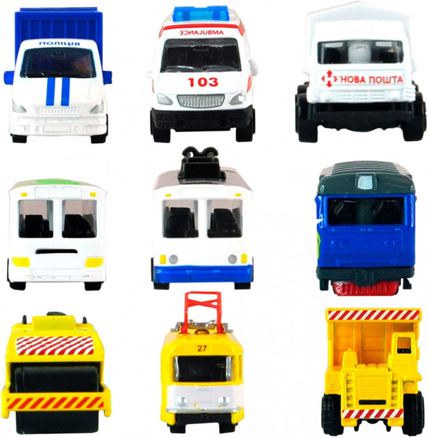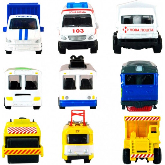 Mini-modelele Vehicule de serviciu sunt masini modele auto din metal ascunse intr-un ou, Acestea vor fi un cadou surpriza minunat si interesant pentru un copil pasionat de masini. Printre modele este: autobuzul de la Kiev, troleibuzul Dnepr, basculanta, tren, tramvaiul Odessa, ambulanta, camion Nova Posta, politie Gazel. Recomandat copiilor cu varsta mai mare de 3 ani. Confectionat din metal si mase plastice.