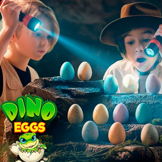 Jucaria in crestere dintr-un ou „Dino Eggs” - DINOZAURI iti va permite sa cresti propriul dinozaur dintr-un ou artificial. Faceti cunostinta cu dinozaurii care au trait pe Pamant in urma cu milioane de ani! Printre acestia puteti intalni sarcosucuri, anchilosauri, brontosauri, carnotauri si alti dinozauri - aflati despre caracteristicile fiecaruia!