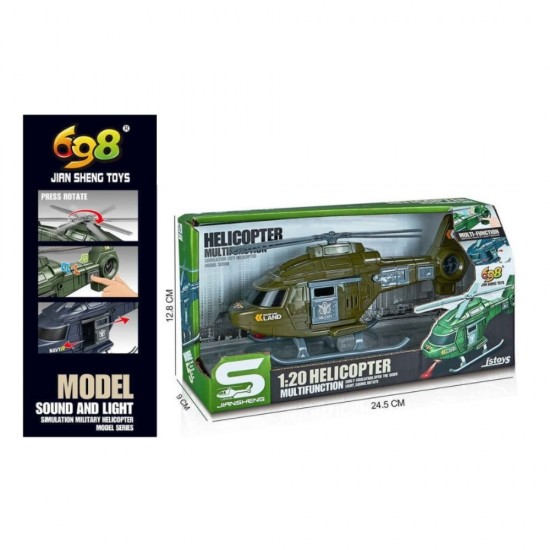 Elicopter militar khaki cu sunete si lumini, 1:20, jstoys, ZJA364050