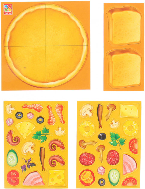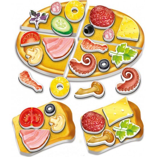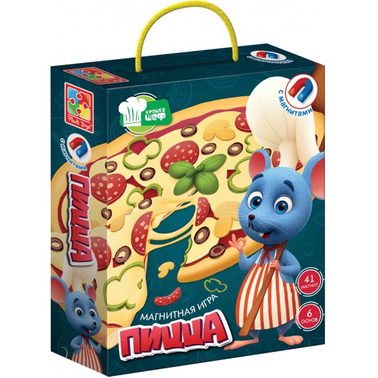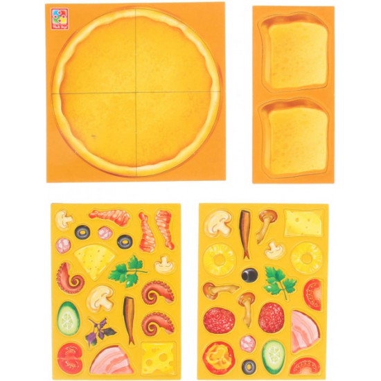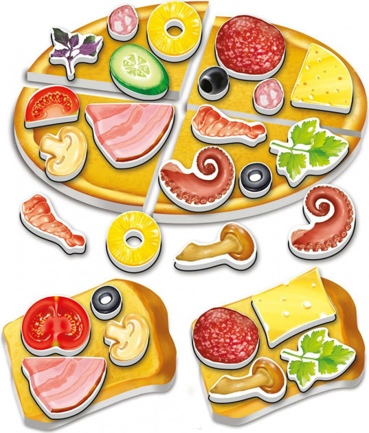 Joaca si creeaza adevarate capodopere culinare. "Pizza" este un joc cu magneti, cu ajutorul careia micutul poate gati propria pizza cu diverse ingrediente. Setul include: 41 de magneti-ingrediente, 4 baze moi pentru pizza, 2 baze-magneti pentru toast-uri. Marimea cutiei: 22,5*18*5 cm. Limba - rusa.Confectionat din carton si hirtie.