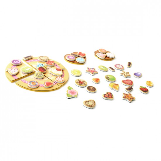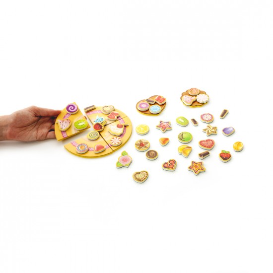 Set complet: 4 bucati de tort, 2 prajituri, 41 ingrediente magnetice. Confectionat din materiale polimerice.