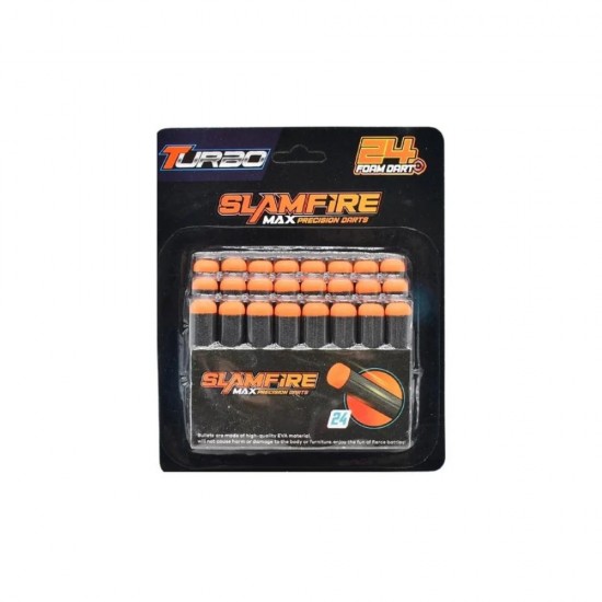 Un set de munitie tip gloante pentru jucarii de tip blaster, destinat copiilor care adora jocurile de actiune. Setul include 24 gloante din spuma, moi si sigure pentru utilizarea in jocurile de interior sau exterior. Gloantele sunt compatibile cu majoritatea jucariilor tip blaster din gama SlamFire si alte modele care folosesc gloante din spuma de dimensiuni standard.