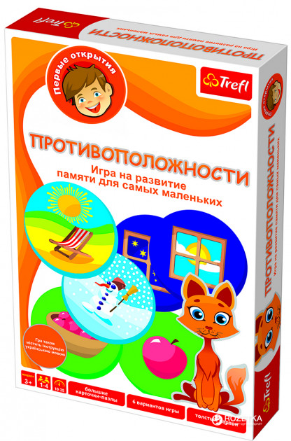 Настольная игра Противоположности – это игра, в которой ребёнок должен добрать пару карточек с изображениями, противоположными по значению. Игра помогает в упорядочивании знаний об окружающем ребёнка мире. В коробке красочные карточки с изображениями, инструкция с 6 вариантами игры.