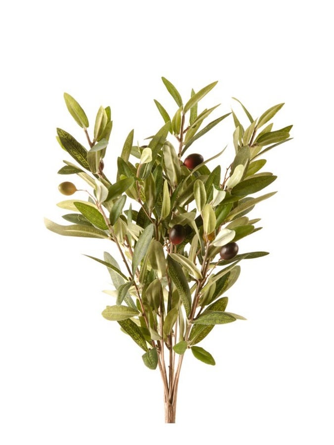 Искусственный куст оливы, 9 веточек, высота 35 см, с тонкими реалистичными листьями. Изготовлен из пластика, идеально подойдёт для кухни, гостиной или средиземноморского стиля.
