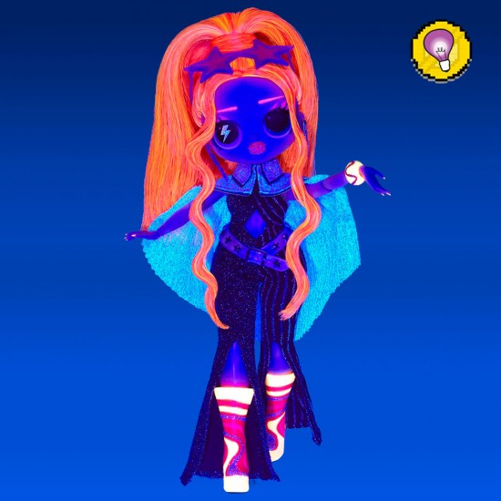 Направьте свет ультрафиолетового фонарика на куклу O.M.G. и ее одежду, чтобы увидеть сюрприз.
