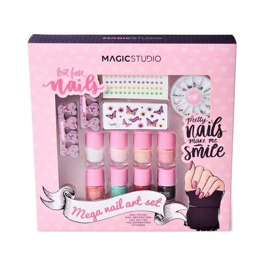 Pin Up Mega Nail Magic Studio - полный набор для ухода за ногтями, включающий лак для ногтей, пилку и декоративные наклейки для идеального образа днем и ночью.