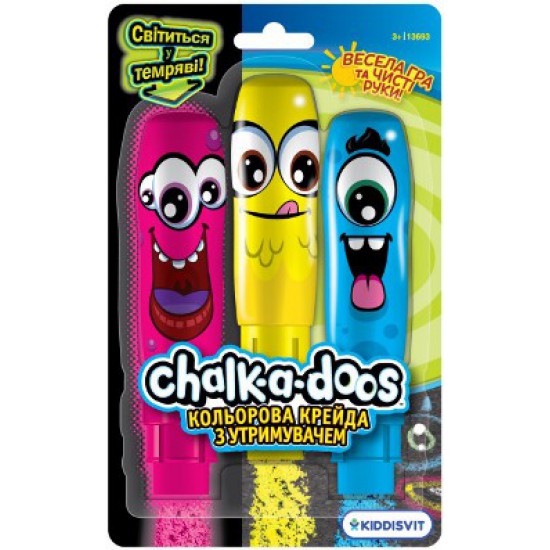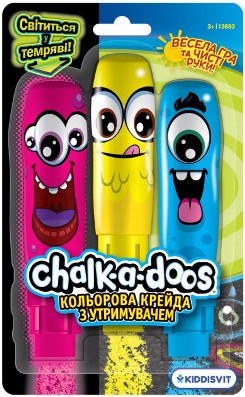 В набор входят мелки насыщенного розового, желтого и голубого цвета. Держатель розового цвета светится в темноте. Благодаря держателям ребенок больше не будет пачкать свои руки! Дизайн упаковок с дружелюбными веселыми лицами.