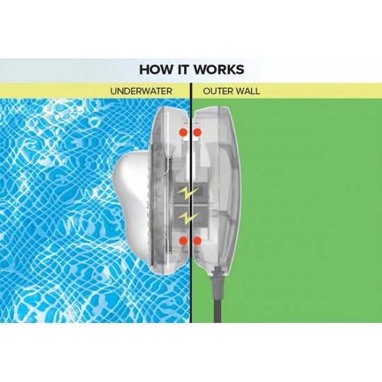 Магнитная светодиодная лампа Intex - это эффективный и безопасный способ создать потрясающее освещение в вашем бассейне в темное время суток. Уникальная магнитная система крепления позволяет установить лампу в любом месте на стенке ПВХ-бассейна без необходимости сверления или повреждения чаши. Питание передается через стенку бассейна с помощью магнитной индукции, что гарантирует полную безопасность при контакте с водой. Лампа поддерживает два режима: классический яркий белый свет для максимальной видимости и многоцветный режим для создания уютной атмосферы. Это идеальный аксессуар для наземных бассейнов диаметром до 732 см.