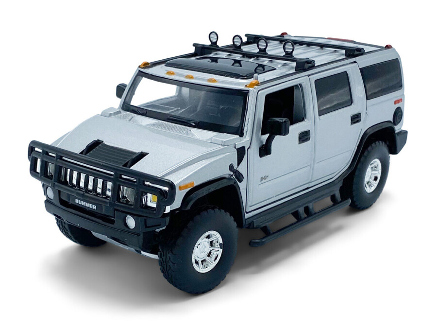 Модель автомобиля Hummer H2, 1:32, Серебро, активное рулевое управление - передние колеса, подвеска, свет и звук