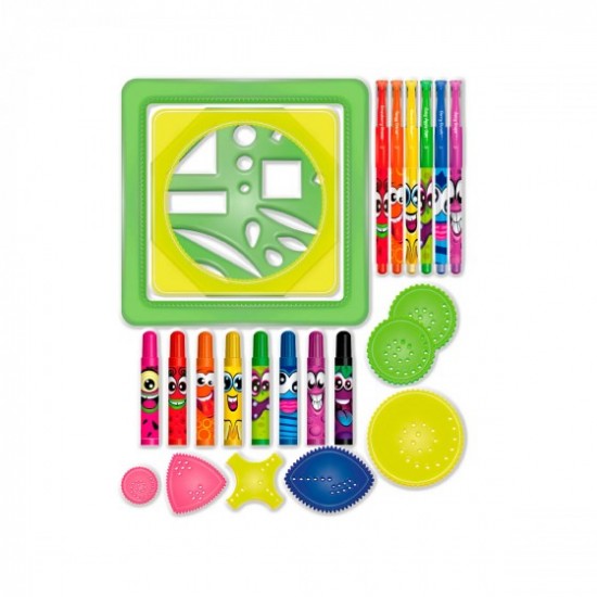 Создавайте потрясающие узоры с помощью спирографа, который входит в набор.