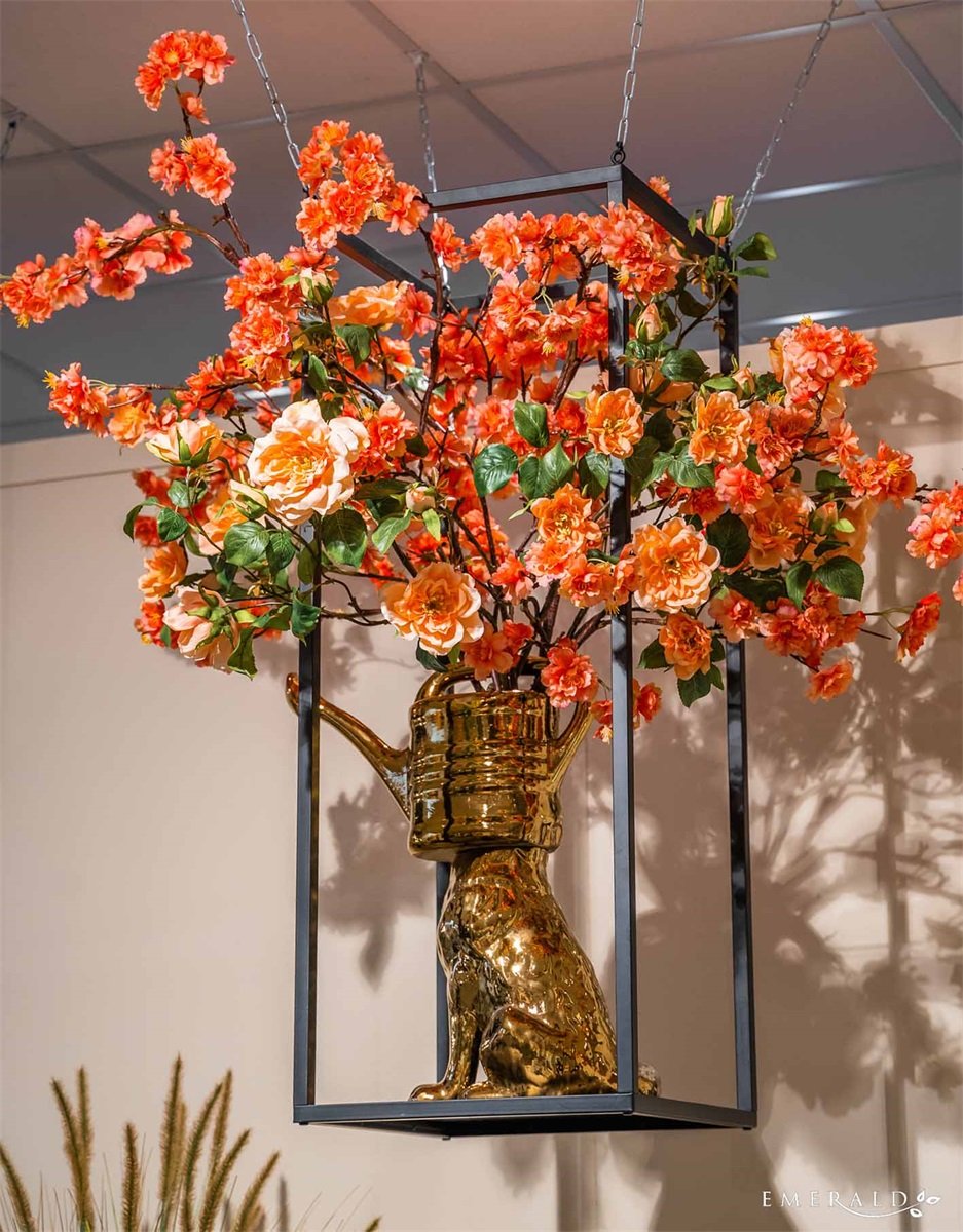 Ветка искусственной сакуры с ярко-красными цветами, длиной 120 см - привлекает внимание и подойдёт для восточного или праздничного декора.