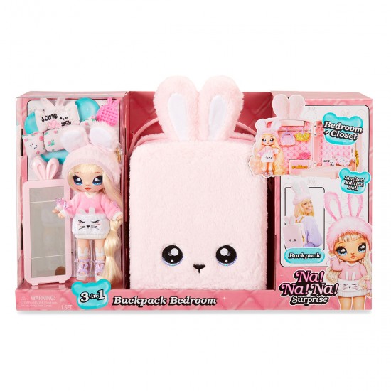 Игровой набор с куклой Na! Na! Na! Surprise 3 в 1 – Рюкзачок-зайчик с сюрпризом - это милый плюшевый рюкзачок в виде зайчика, внутри которого спряталась уютная комнатка с эксклюзивной куколкой. Найдите все сюрпризы!