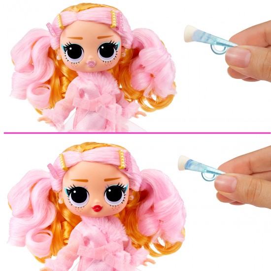 20 сюрпризов! У Айви особенные сюрпризы: ее губы и веки меняют цвет в холодной воде, а волосы светятся в темноте. А ее маленькая сестричка LOL брызгается, плачет или делает пи-пи!