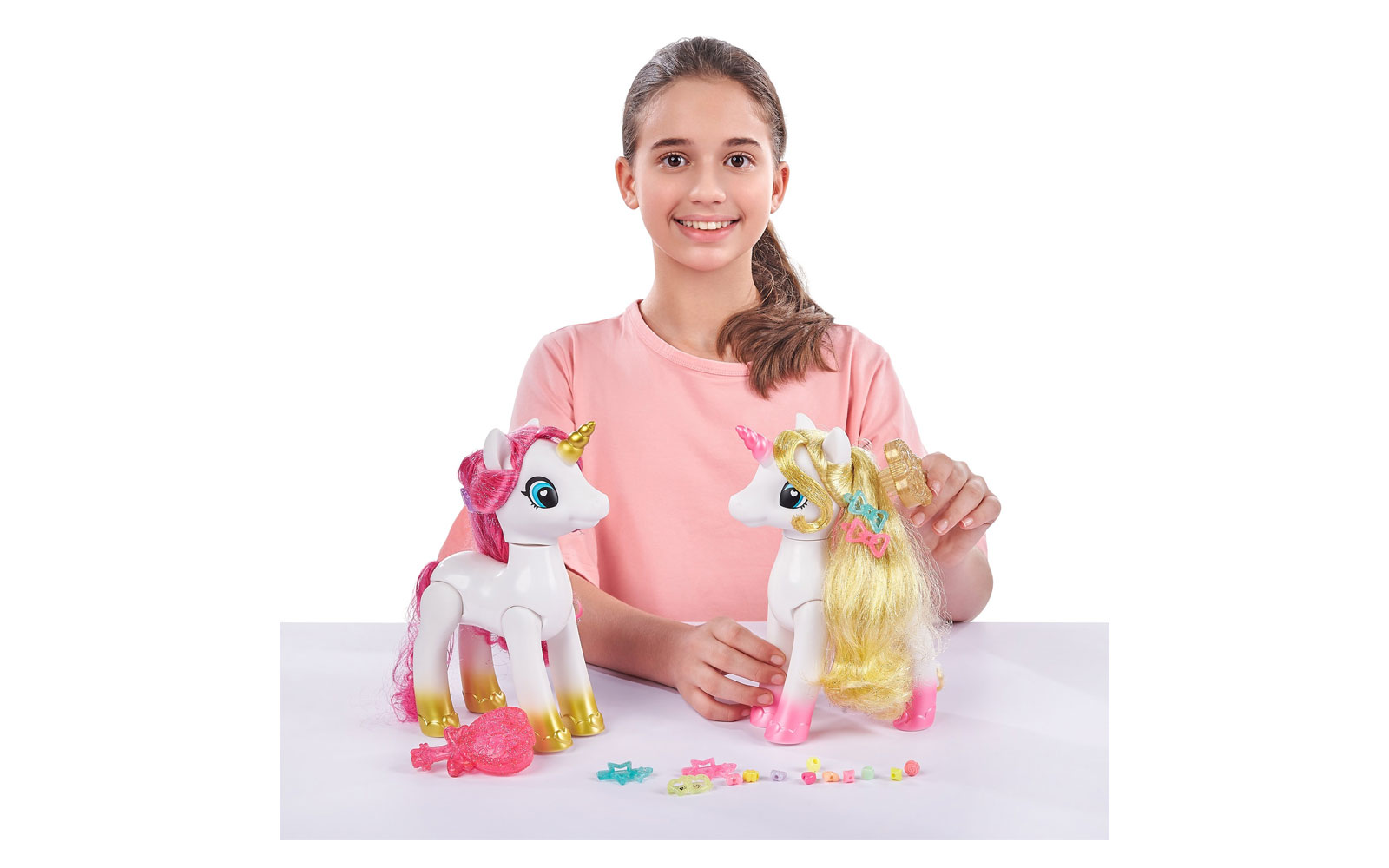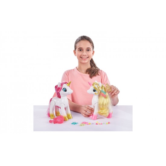 Очаровательные, милые и очень дружелюбные единороги - настоящие произведения искусства для маленьких модниц, которым нужен друг, с которым можно приятно поиграть. Милые единороги особенные благодаря своим шелковистым волосам и набору шпилек, которые можно использовать в качестве аксессуаров для создания самых современных причесок и косичек. Проверьте свои творческие способности и играйте с любимыми друзьями.