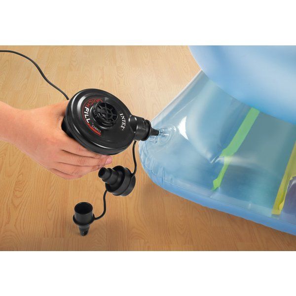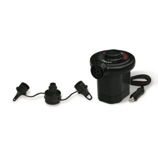 Насос работает от автомобильного источника питания 12 В. С помощью этого насоса вы можете накачивать или ссдувать любые изделия INTEX (кровати, матрасы, бассейны, лодки, плавательные принадлежности, игровые центры).