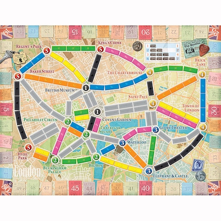 Ticket to Ride: London является частью знаменитой серии Ticket to Ride, в которой игроки будут собирать карточки, создавать маршруты и разыгрывать проездные билеты, но на этот раз на меньшей карте Лондона 1970-х годов, с возможностью играть больше не на чем 15 минут!
