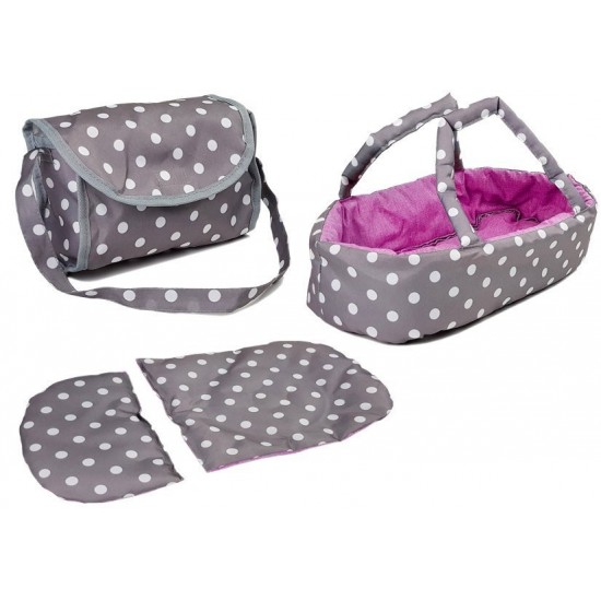 7694 Carucior papusi Alice cu geanta gri-roz cu buline
