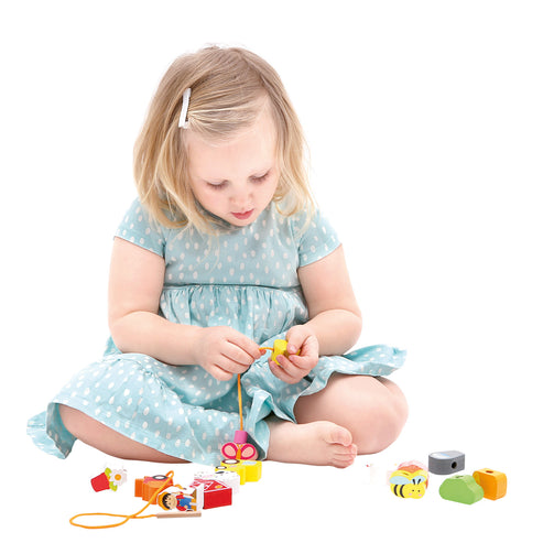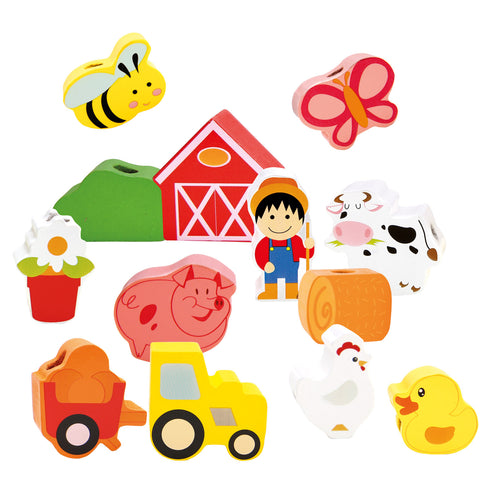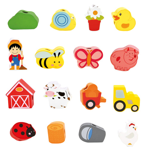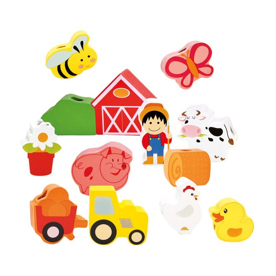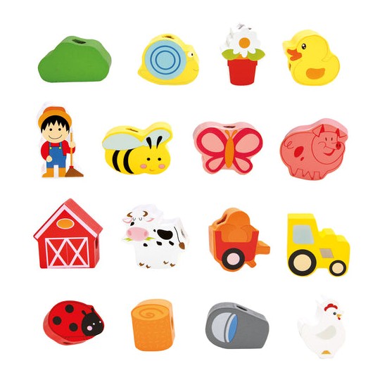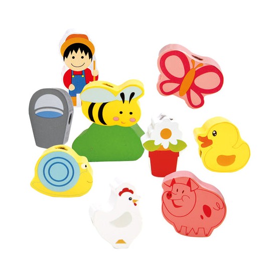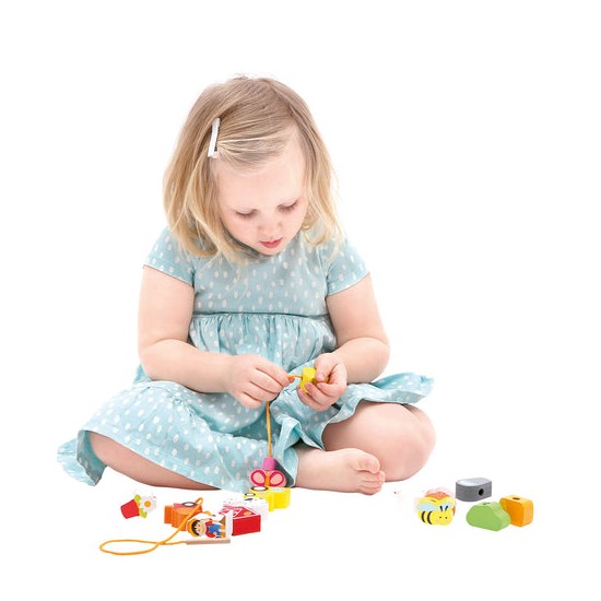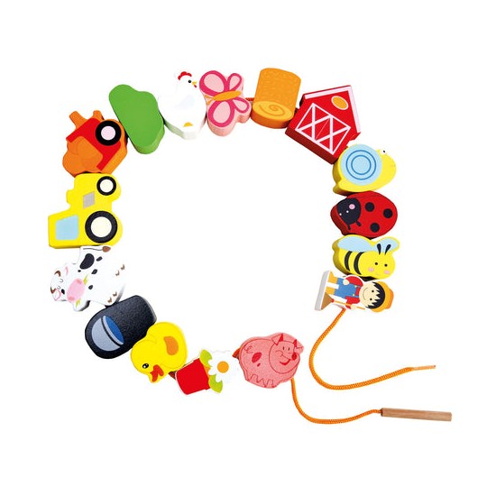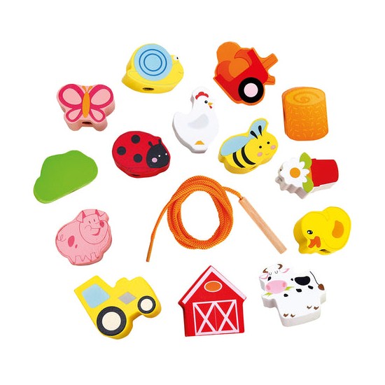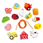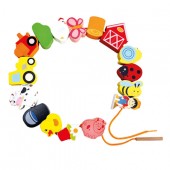 Швейная игрушка с деревянным шнурком и иголкой поможет ребенку выучить цвета и даже сосчитать все предметы и животных.