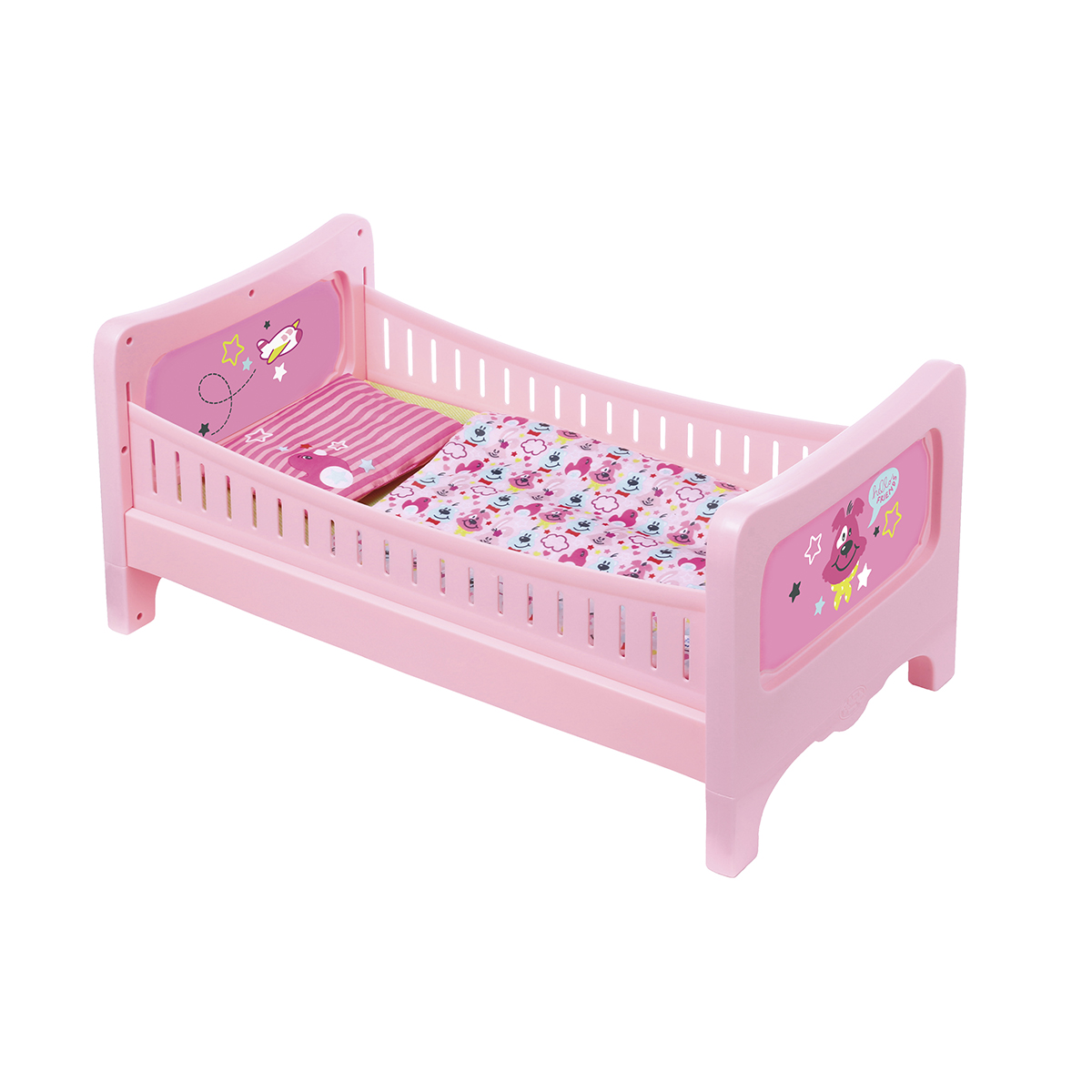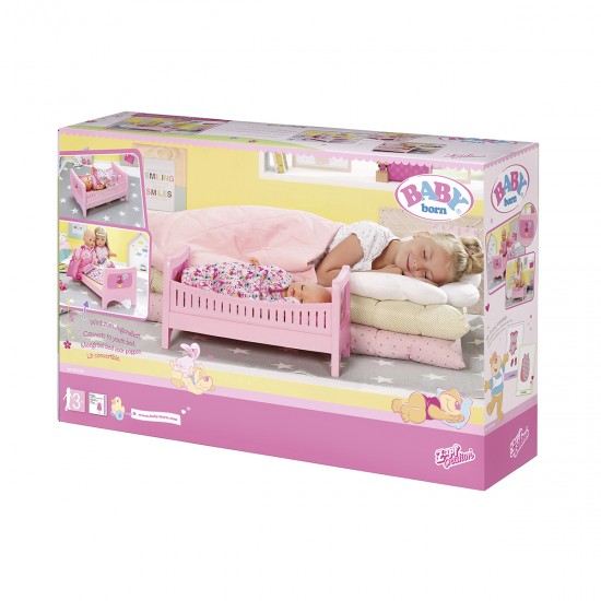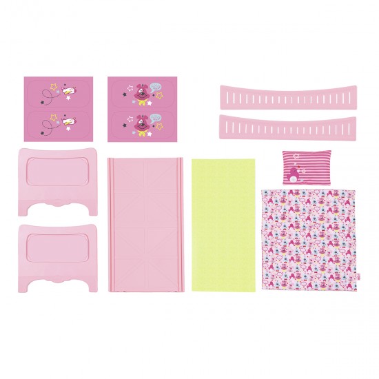 Чтобы сны малышки BABY born всегда были сладкими и добрыми, ей обязательно понадобится такая кроватка! Милая, в розовых цветах и с очаровательной собачкой. В наборе есть подушка и одеяльце. Кровать подходит не только для вашей любимицы, но и для ее старшей сестрички - ведь боковые стороны съемные!