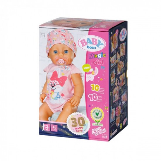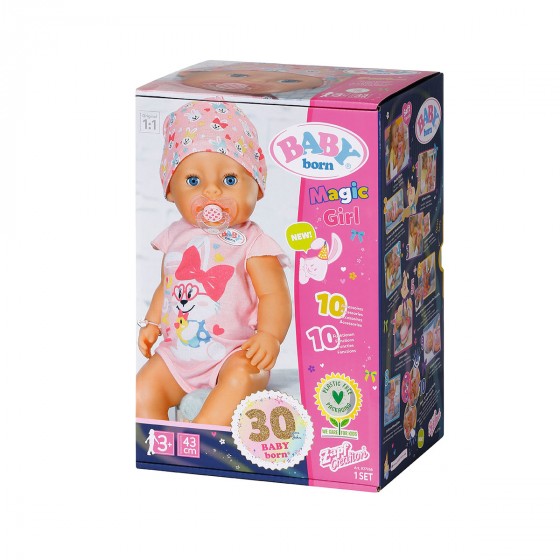 Встречайте новинку от BABY born! Играть с куклой серии "Нежные объятия" - ВОЛШЕБНАЯ ДЕВОЧКА стало ещё интереснее и веселее! Кукла-пупс одета в милое розовое боди и шапочку. Теперь игра с куколкой стала еще интереснее, благодаря "волшебной" пустышке. Глазки куколки открываются или закрываются с помощью поворотов пустышки, когда она находится у неё во рту. Чтобы кукла уснула, достаточно просто повернуть пустышку и ее глазки закроются, в каком бы положении она не была. Но также она может уснуть и без пустышки. Просто положите ее в кроватку или на ручки, и она сразу же закроет глазки! Эти новые возможности делают игры с BABY born более реалистичными.