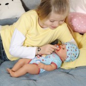 Встречайте новинку от BABY born! Играть куклой серии "Нежные объятия" - ВОЛШЕБНЫЙ МАЛЬЧИК стало ещё интереснее и веселее! Кукла-пупс одет в симпатичное голубое боди с медвежонком и шапочку. Теперь игра с куколкой стала еще интереснее, благодаря "волшебной" пустышке. Глазки куколки открываются или закрываются с помощью поворотов пустышки, когда она находится у неё во рту. Чтобы малыш уснул, достаточно просто повернуть пустышку и его глазки закроются, в каком бы положении он не был. Но также пупс может уснуть и без пустышки. Просто положите его в кроватку или на ручки, и он сразу же закроет глазки! Эти новые возможности делают игры с BABY born более реалистичными.
