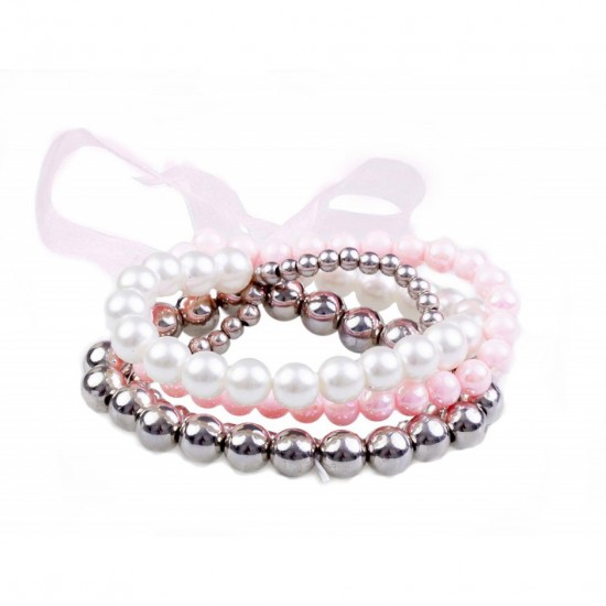 Легкая элегантность воплотилась в новом наборе браслетов Pearly to Wed от канадского бренда Great Pretenders. Нежные цвета, стильный дизайн и милые бантики придутся по душе маленьким модницам. Три браслета, входящие в набор, выполнены из бусин под жемчуг, что добавляет украшениям аристократичности и шика. При этом бижутерия бренда не содержит драгоценных и полудрагоценных камней и металлов, что подходит для детей от трех лет. Материалы, из которых изготовлены браслеты, гипоаллергенны и безопасны для ребенка: