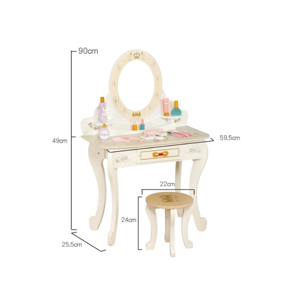 Изысканный игровой набор, который предлагает детям опыт, полный воображения и веселья. Благодаря элегантному дизайну, качественным материалам и прилагаемым аксессуарам этот столик идеально подходит для маленьких исследователей мира макияжа и ухода за собой. В комплект также входит удобный стул, идеально подходящий по размеру для детей. Вы найдете серию игрушечных аксессуаров для макияжа, таких как кисточки, флаконы для духов и другие косметические товары. Эти аксессуары безопасны для детей, что способствует развитию воображения и творчества.