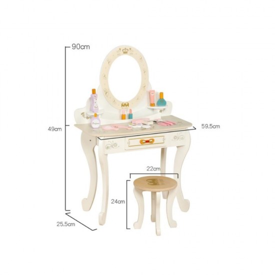 Деревянный столик для макияжа с зеркалом и стулом, белый, с аксессуарами, ZJA359676