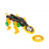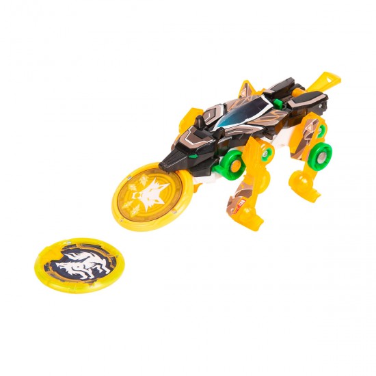 Чтобы автомобиль трансформировался, не нужно прилагать слишком много усилий - автомобиль разгоняется, достигает специального магнитного диска, который входит в комплект всех комплектов, совершает эффектный прыжок в воздухе и автоматически производит впечатляющее преобразование. Игрушка вручную приводится в исходное положение в виде машинки.