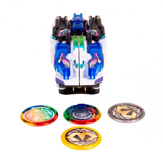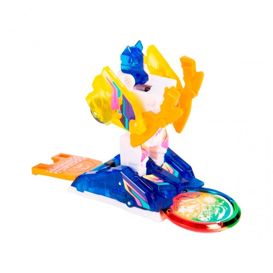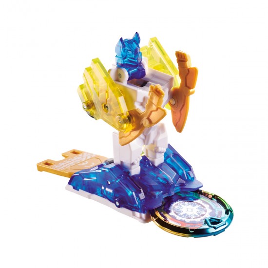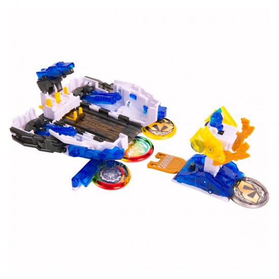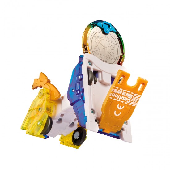 Чтобы автомобиль трансформировался, не нужно прилагать слишком много усилий - автомобиль разгоняется, достигает специального магнитного диска, который входит в комплект всех комплектов, совершает эффектный прыжок в воздухе и автоматически производит впечатляющее преобразование. Игрушка вручную приводится в исходное положение в виде машинки.